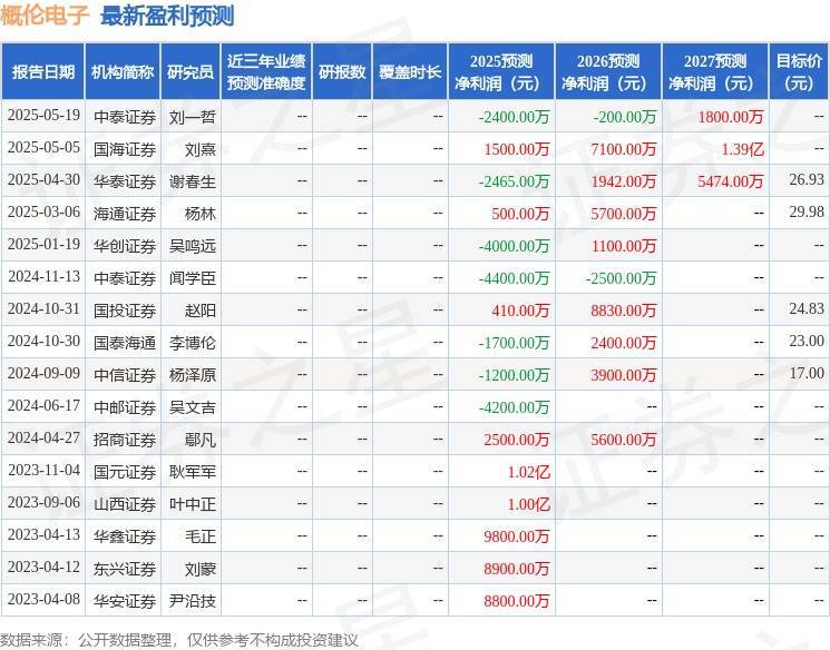 以下是详细的盈利预测信息: